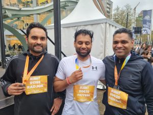 Toen de 2.000 deelnemers aan de City Run zich klaarmaakten voor hun 4,2 kilometer door de Rotterdamse binnenstad, was het nog altijd nat en een stuk kouder dan in de ochtend. Voor Radjoe, Prijesh en Kishan kon dat de pret niet drukken. Voor hen is deelname aan de City Run uitgegroeid tot een familietraditie.